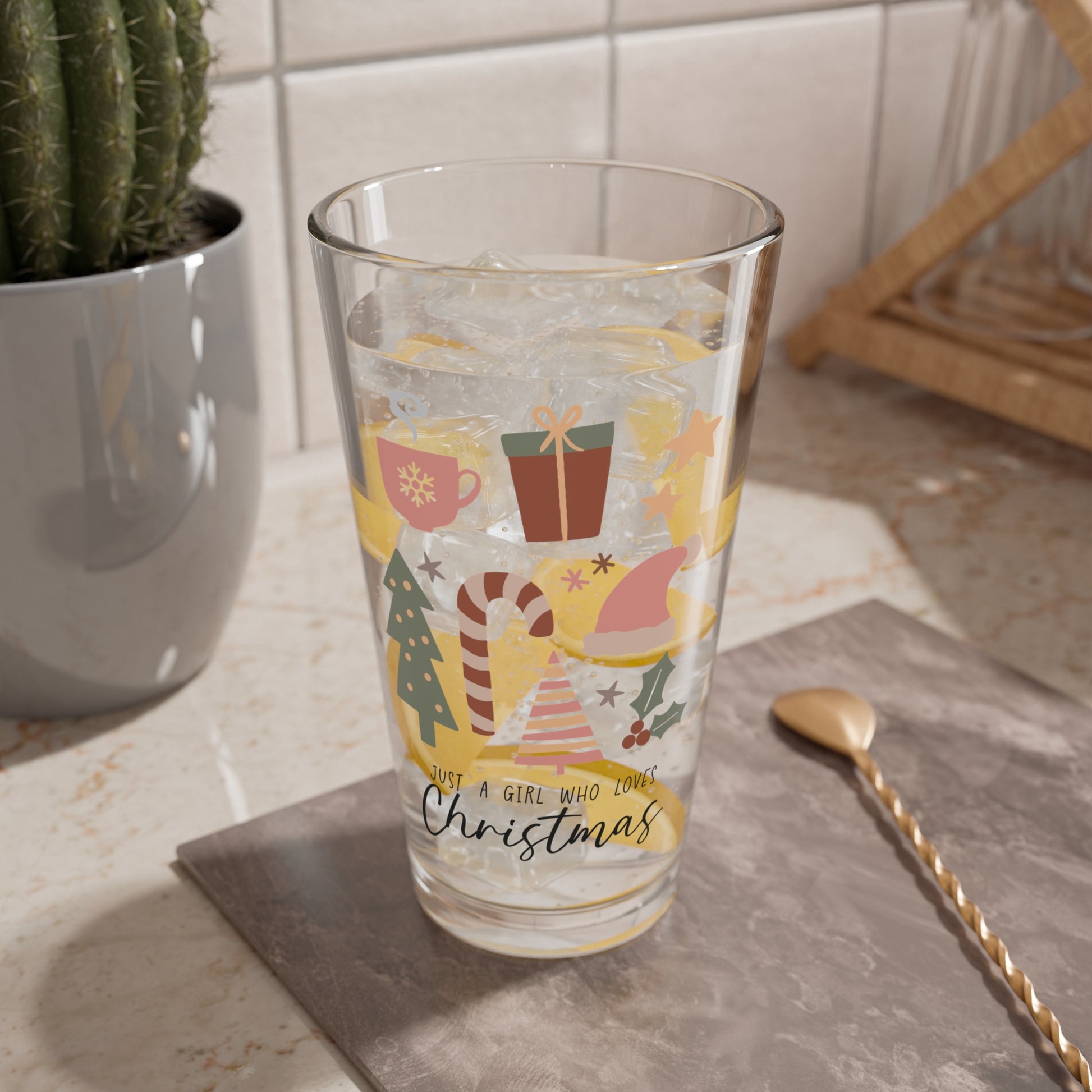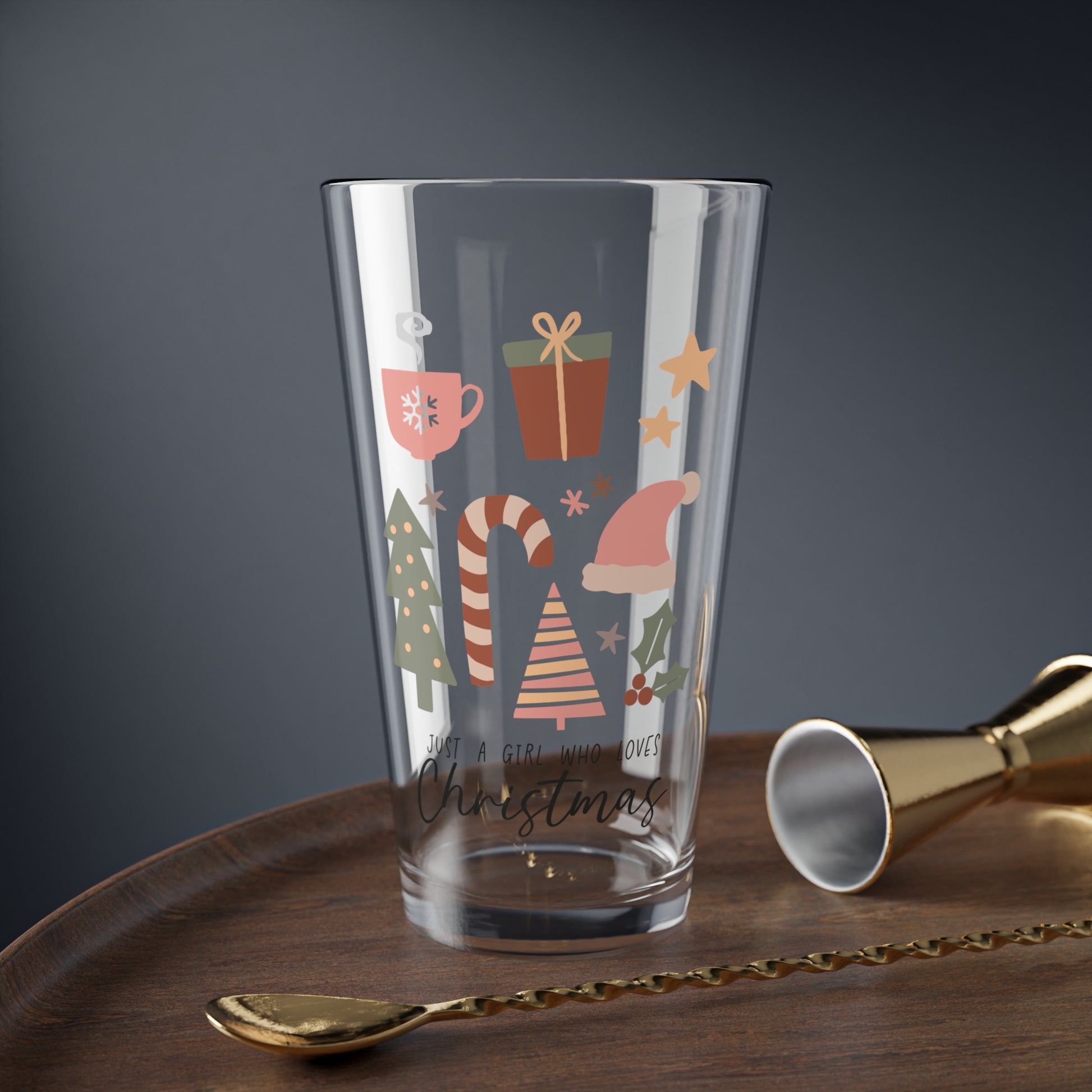 Christmas Mixing Glass, 16oz Holiday Drinkware, Fun Glass for Gifting, Festive Kitchen Decor, Cute Seasonal Glass