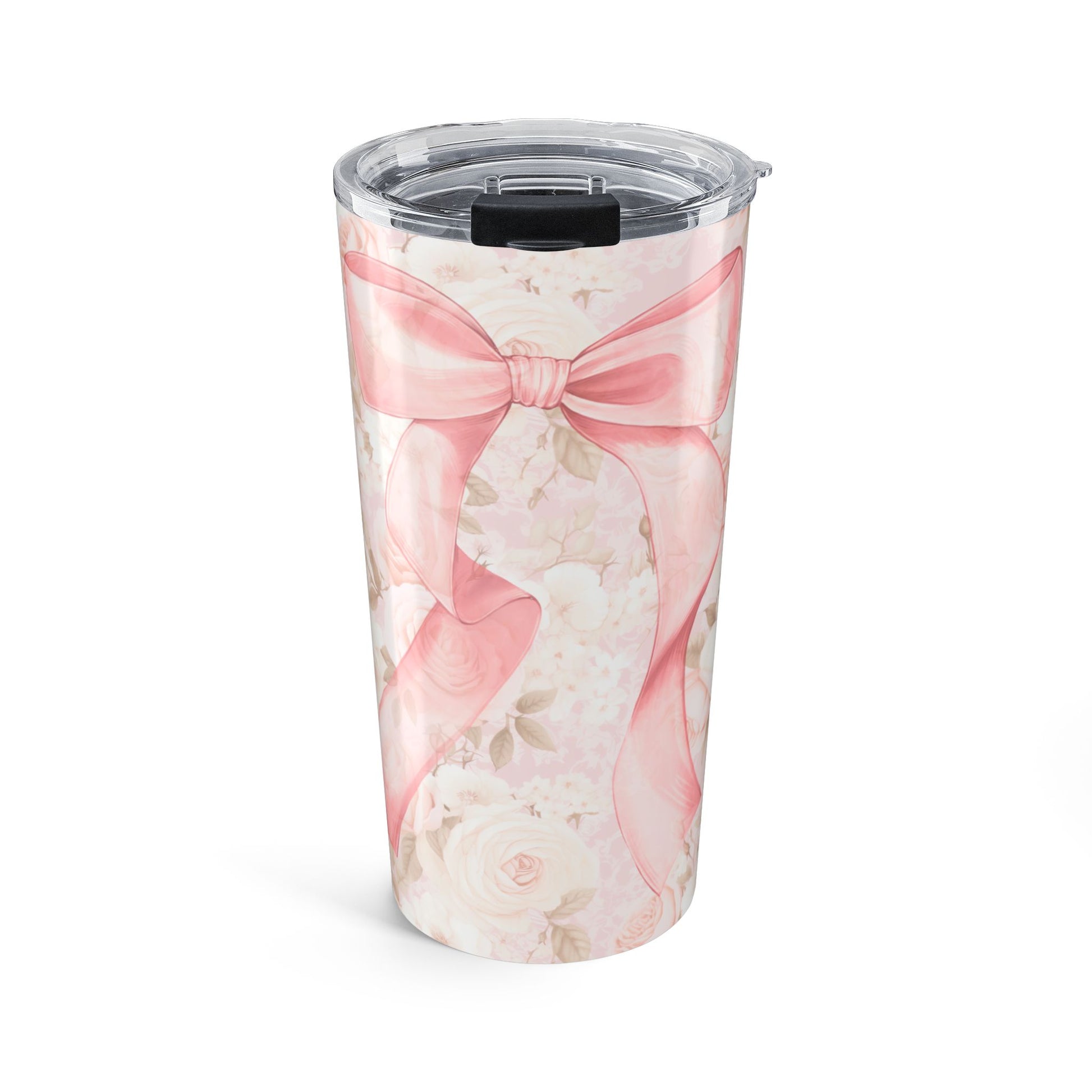 Elegant Floral Tumbler with Pink Ribbon, Personalized Drinkware for Weddings, Gifts, Parties, and Everyday Use