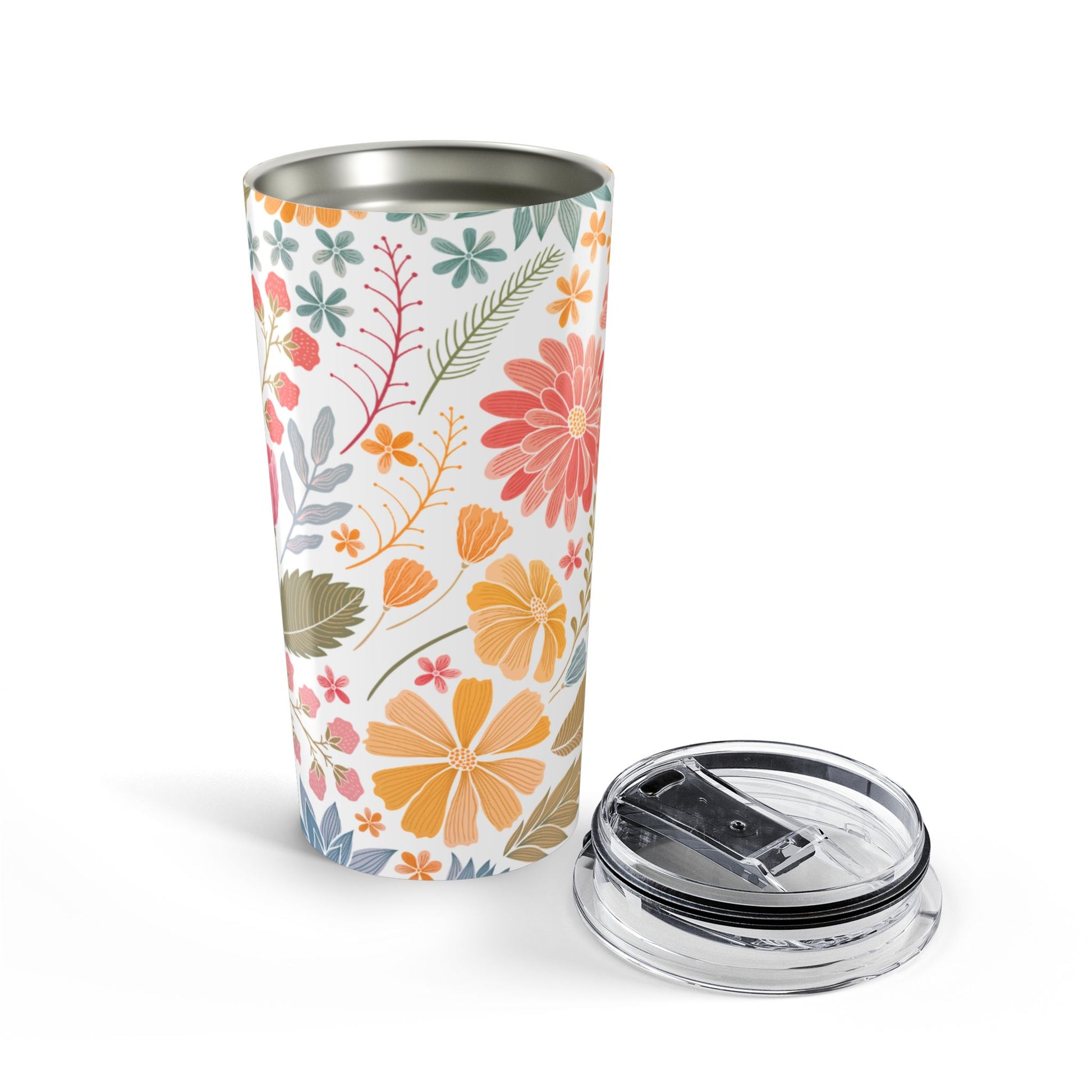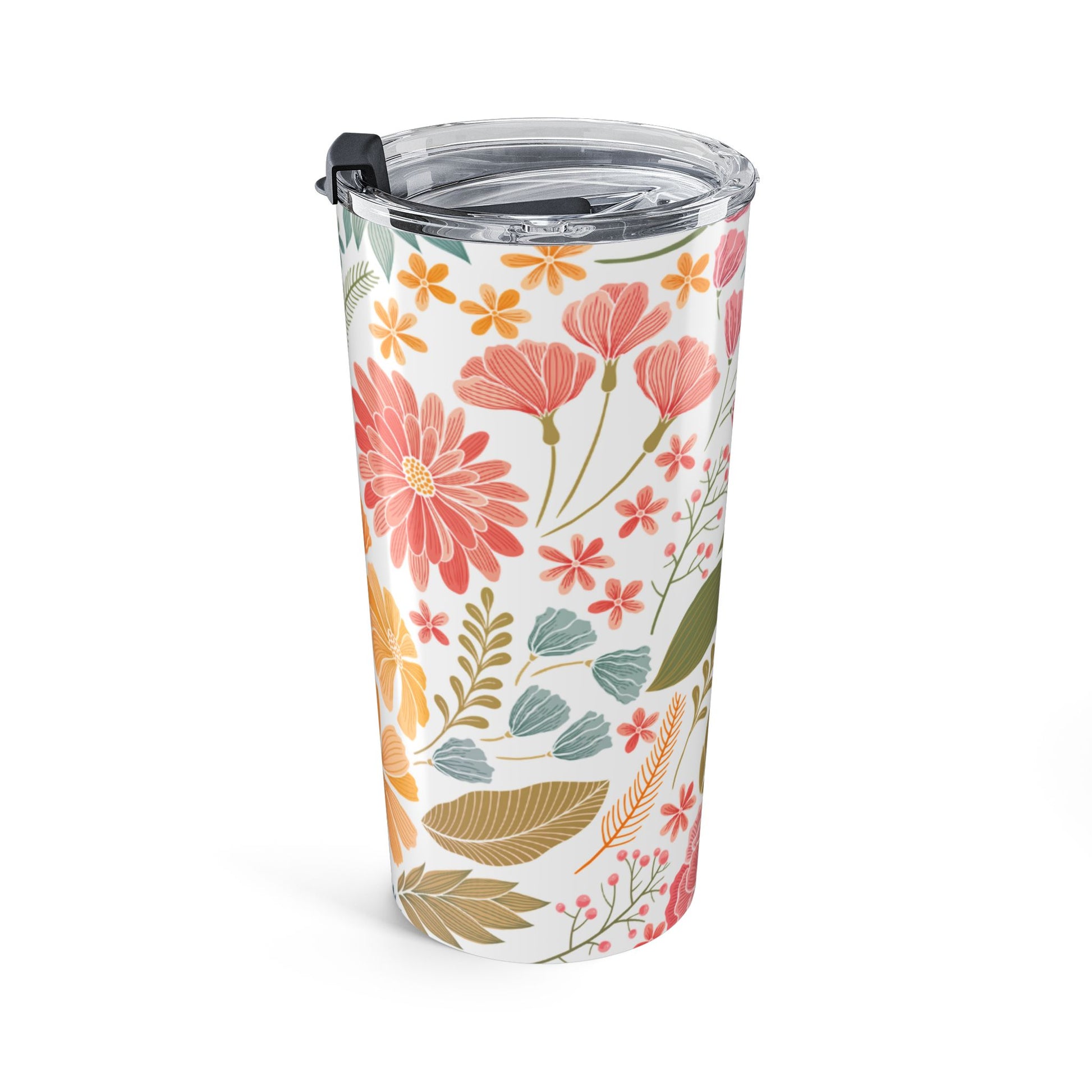 Floral Insulated Tumbler, 20oz Travel Mug, Summer Drinkware, Gift for Her, Eco-Friendly Beverage Tumbler