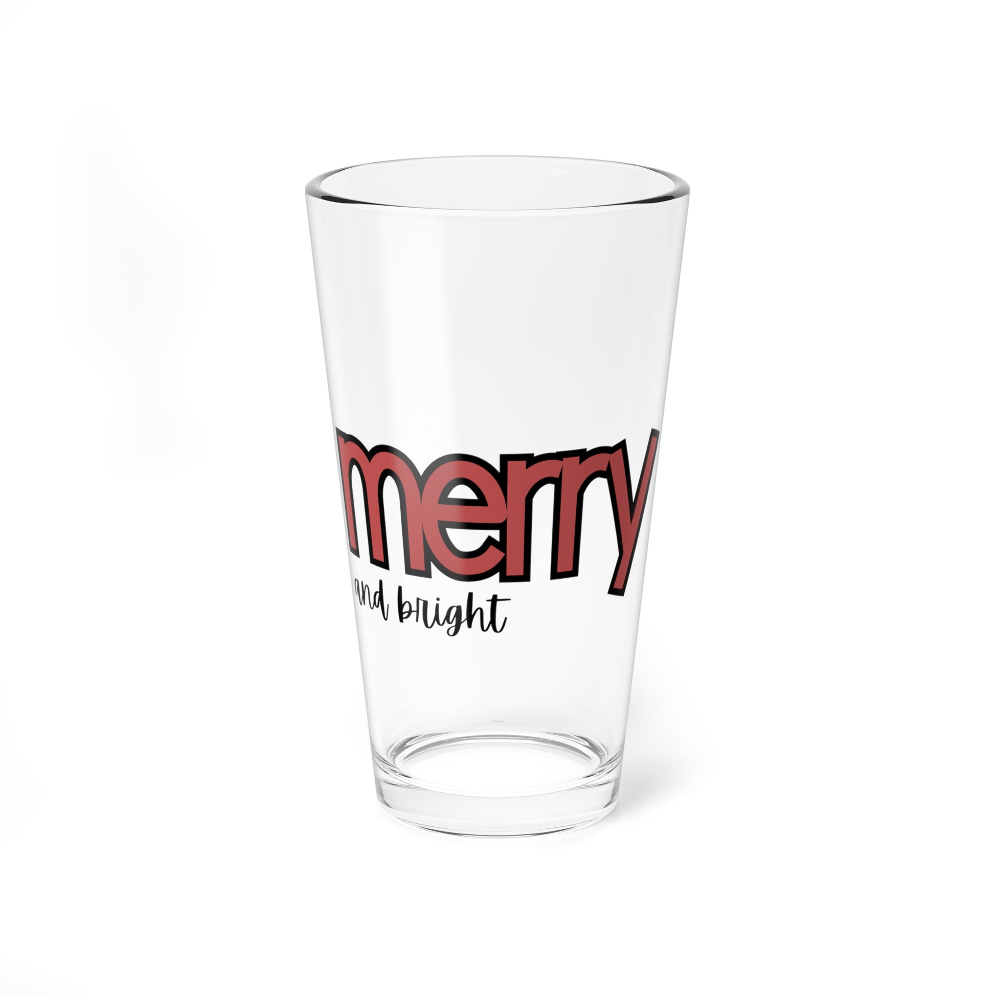 Merry Mixing Glass, 16oz Cocktail Tumblers, Holiday Party Drinkware, Christmas Glassware, Festive Barware, Gift for Home Mixologists